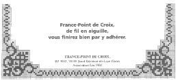France-Point de Croix a pour but de promouvoir le point de croix à points comptés en tant qu'activité créatrice et mode d'expression à part entière, ainsi que de permettre la création des liens entre ces brodeurs de tous horizons quelquefois un peu isolés.
